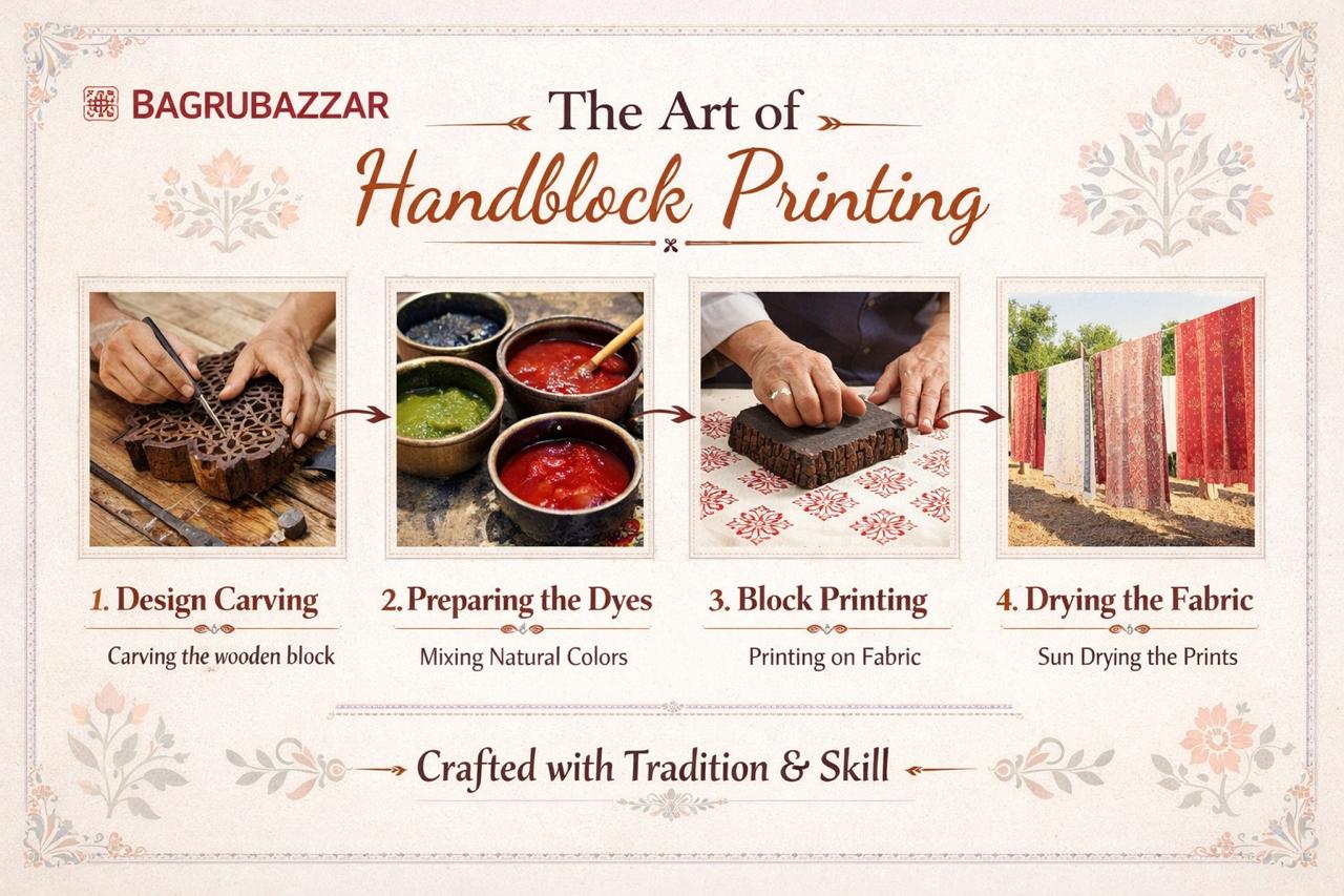 Handblock Printed Unstitched Cotton Suit for Women with Cotton Dupatta – Bagrubazzar Ethnic Collection