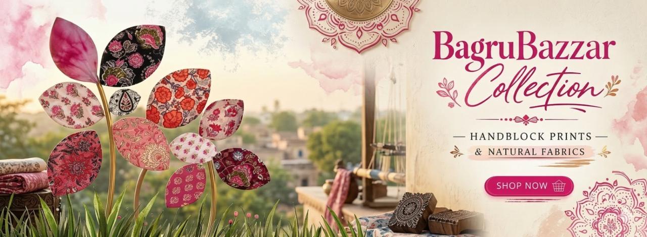 Bagrubazzar Handblock Jaipur Print Unstitched Cotton Suit with Matching Cotton Dupatta – Elegant Ethnic Wear